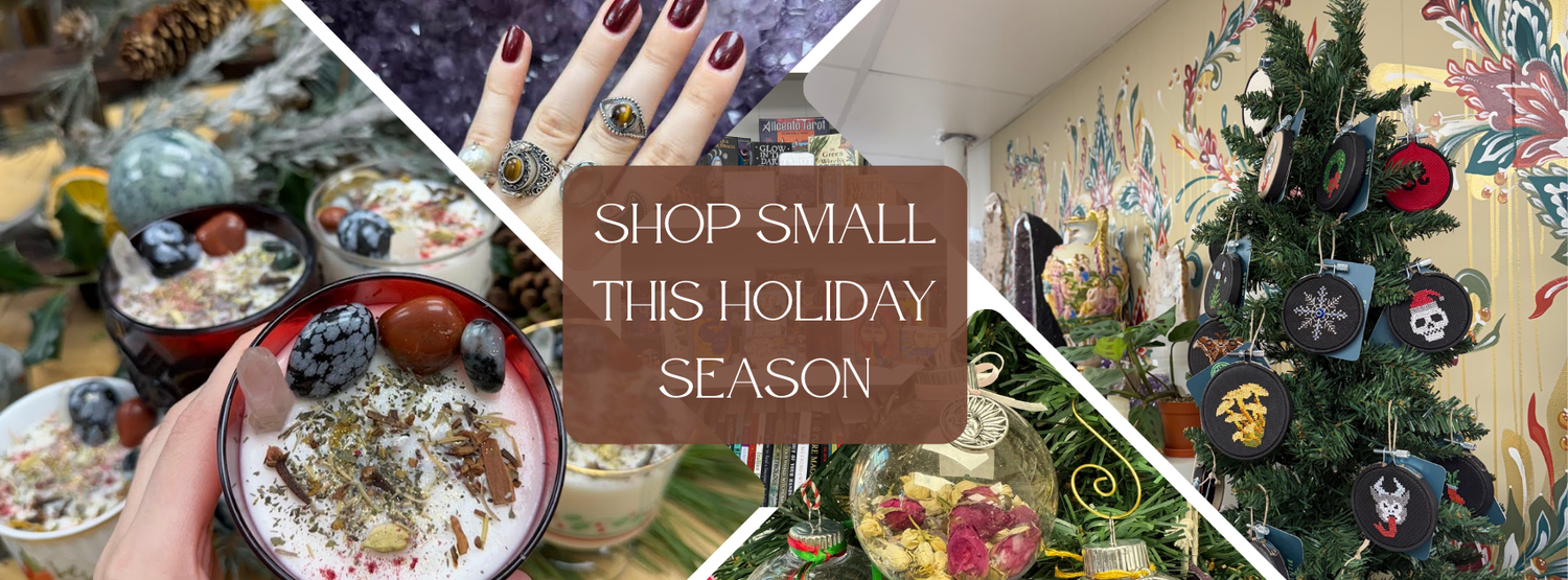 Our online store is located here on our sister company's page. View our vast selection of crystals, candles, and other curated goods! Orders can be picked up in person during store hours.